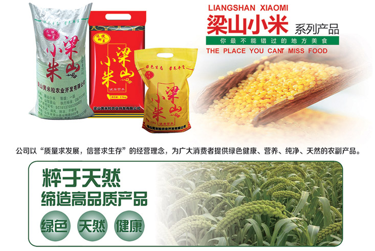 “一方水土造就一方特产”,梁山黄河滩区因特殊的地理环境,盛产的小米具有籽大粒圆、色泽金黄、性粘味香、营养丰富的特点,亦称“梁山黄米粒”。梁山黄米粒农业开发有限公司从建立的初期计划,到厂房特定的建设,以及富裕的销售渠道,并拥有三条科技技术现代化的全自动生产线,结合国外先进的加工设备和技术,其选料,过滤,晒干,包装等设备齐全,产品及环境完全符合国家食品安全卫生标准。